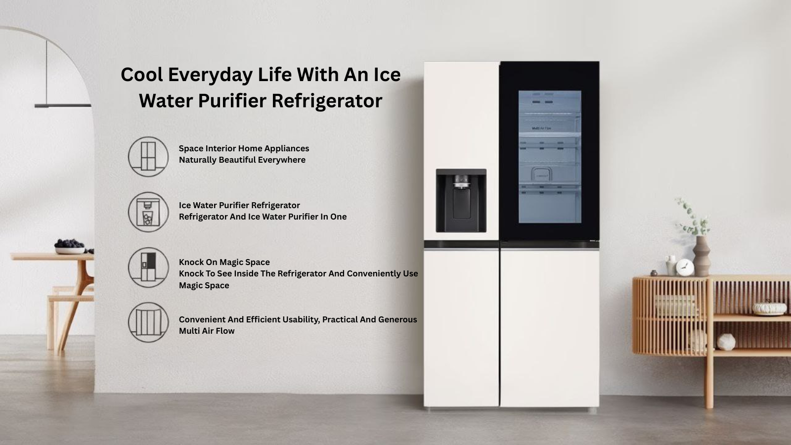 Incorporates an ice water purifier inside the refrigerator, making it a sleek, practical and modern unit.