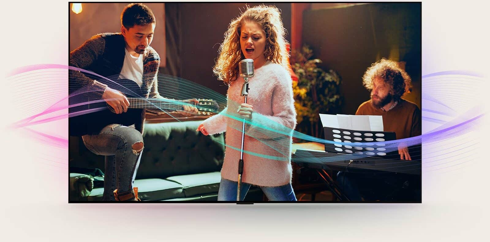 Get a surround sound experience with just your LG TV. AI uses deep learning algorithms to make it seem as if the sound is coming from 9.1.2 channels all around you.